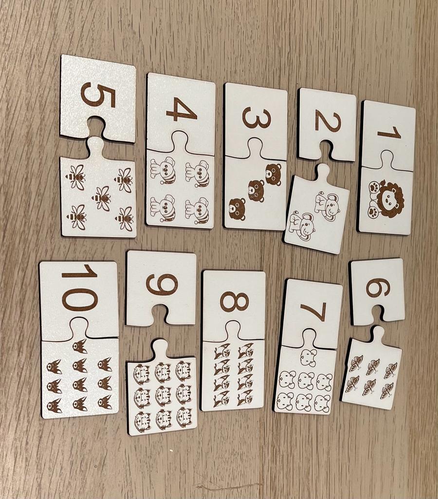 Puzzle animaux éducatif en bois pour apprendre à compter les chiffres et connaitre les noms des animaux.